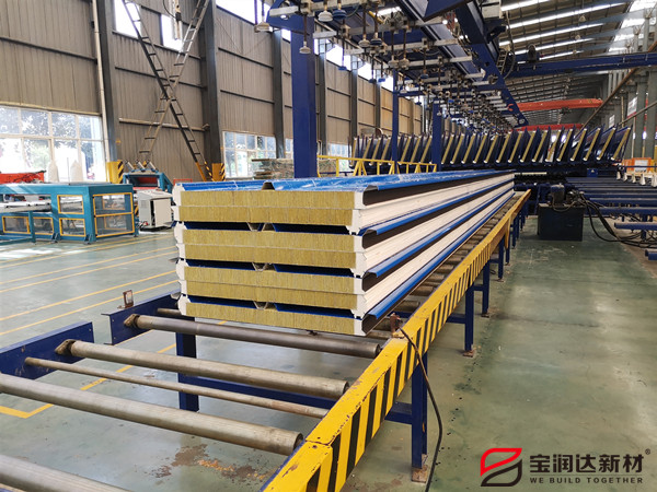 聚氨酯屋面板的主要材料为面板和芯材,通过专业的生产设备和技术工艺,将面板和芯材复合到一起制作而成。宝润达的聚氨酯屋面板选用镀铝锌彩卷作为面板材料,选用硬质发泡聚氨酯、A级防火岩棉、玻璃丝棉作为芯材,从源头保证产品质量。
